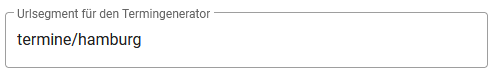 Die Erreichbarkeit jeder Terminseite lässt sich frei definieren. Das URL-Schema baut sich aus einzelnen Bestandteilen auf und ist im letzten Teil wählbar. Die hier definierte URL führt zu https://app.arztkonsultation.de/schulungspraxis/termine/. Das Schema lautet immer